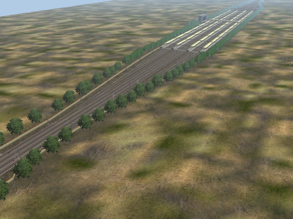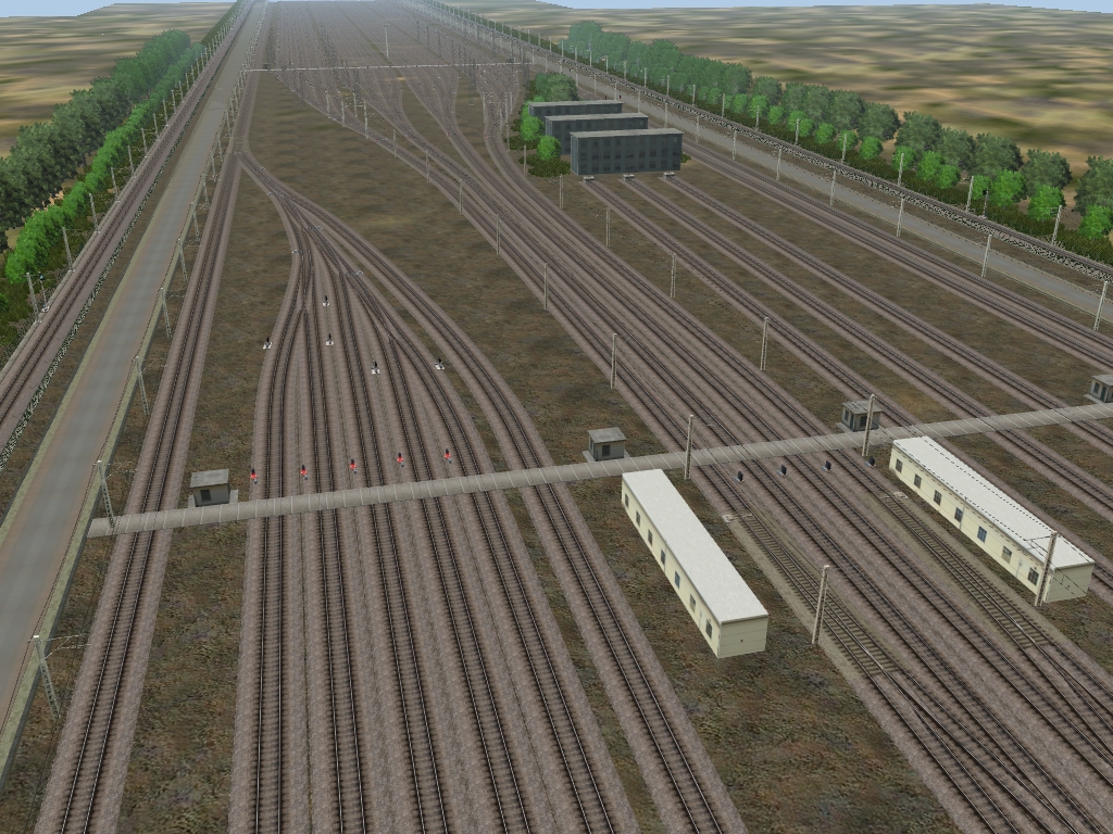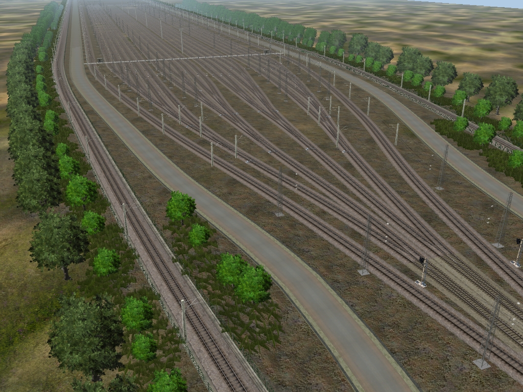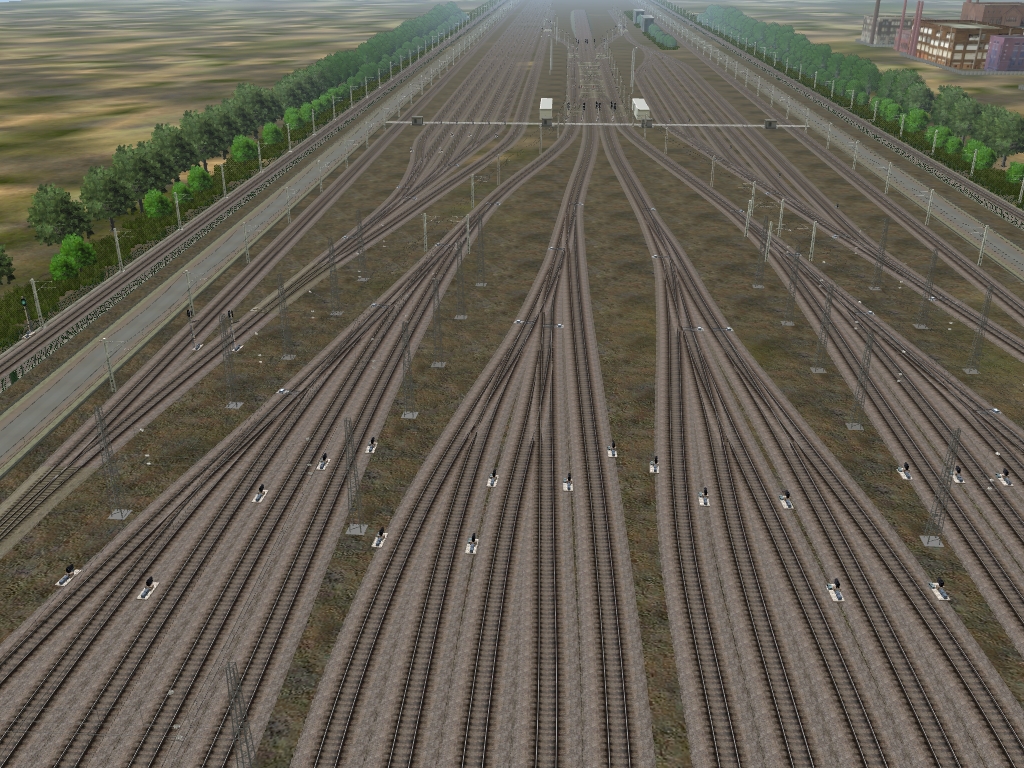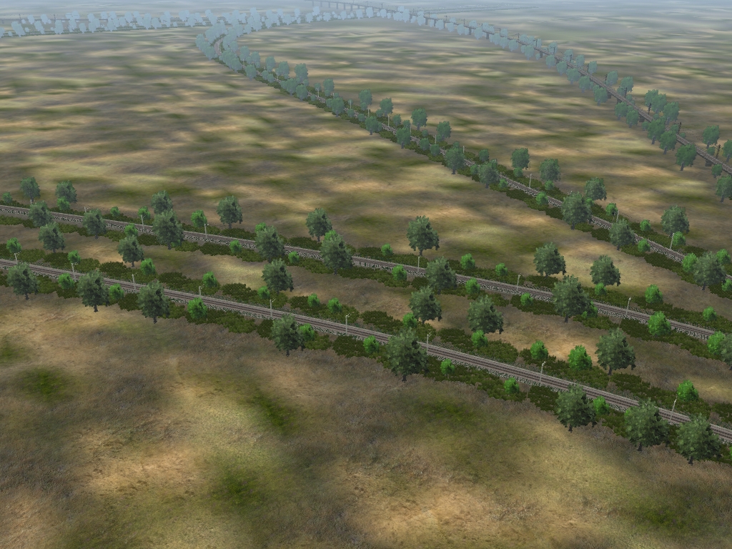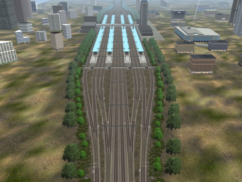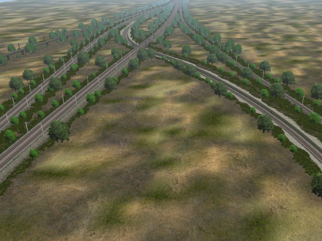 虚拟大环线,目前暂定名,这是本人修的第一条线路,断断续续修了三年,全凭想象,随意修的虚拟线路,以平原为主,附带少量山区,桥梁隧道都有,采用的插件绝大部分来自游戏本身,但还是尽量做到像中国线路的风格,线路设有较大车站:中心站,炼油厂站,煤矿站,南环站,北环站,还有一个编组站,以及其他中小附属站,本线路各站正线道岔默认为直通状态,即使即使人工驾驶列车在不搬道的情况下在环形线路里跑大圈,不会跑上断头线脱轨,本线路主要适合多列AI车同时运行,是以AI车自动化任务运行为主的线路,设定了标准化的轨道标记,包含运行方向标记,始发到达标记,每一个重点车站的轨道都有到达始发标记,如果车站有多条轨道去往不同的车站还设有引导车辆通过的标记,防止AI车走错线路,目前线路属于预览版,布景绿化正在由QQ2178312972逐步完成。等到正式版时,大家将看到不一样的视觉效果。由于线路是为AI车设计的,所以信号设置跟真正的铁路信号有很大的差别,所以请不要和真实线路对标。由于经验不足,部分先修的车站道岔设置不是很合理,望各位玩家见谅。