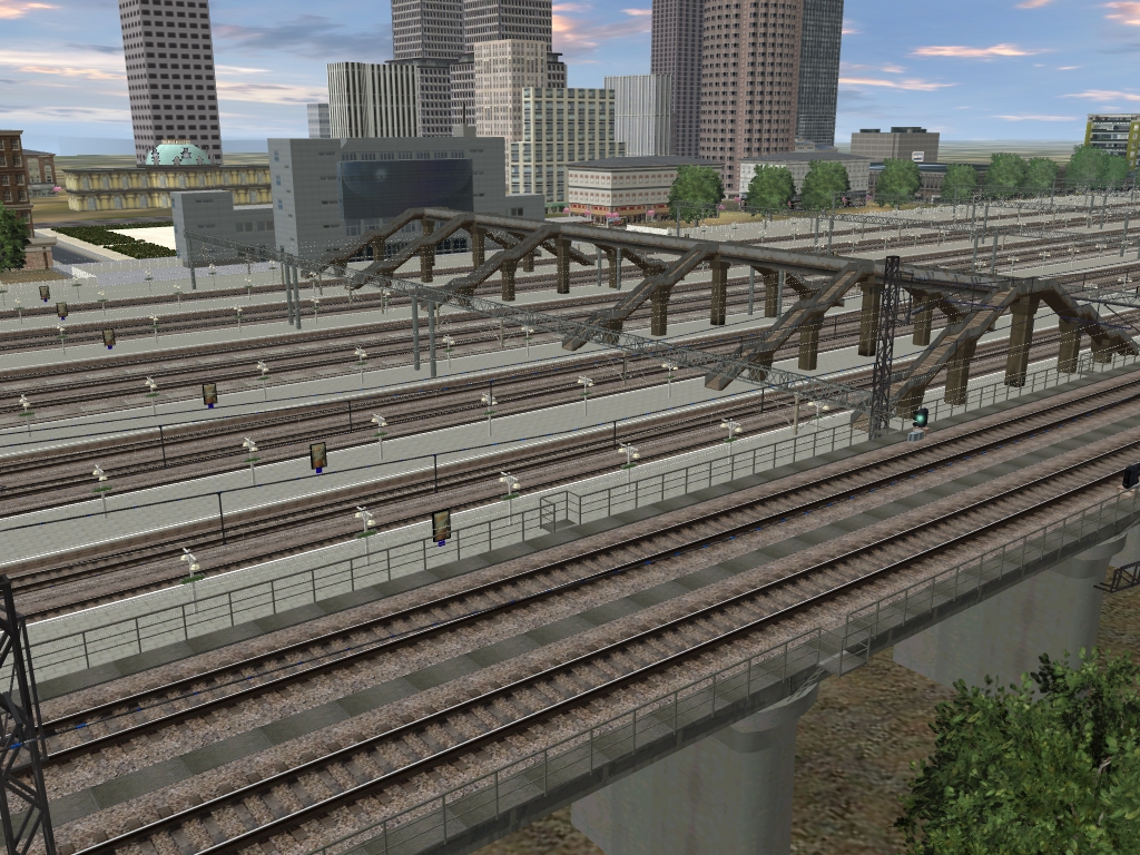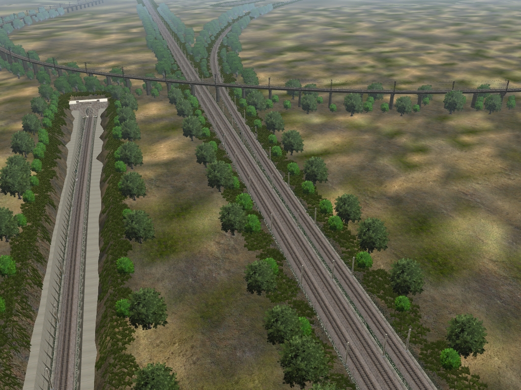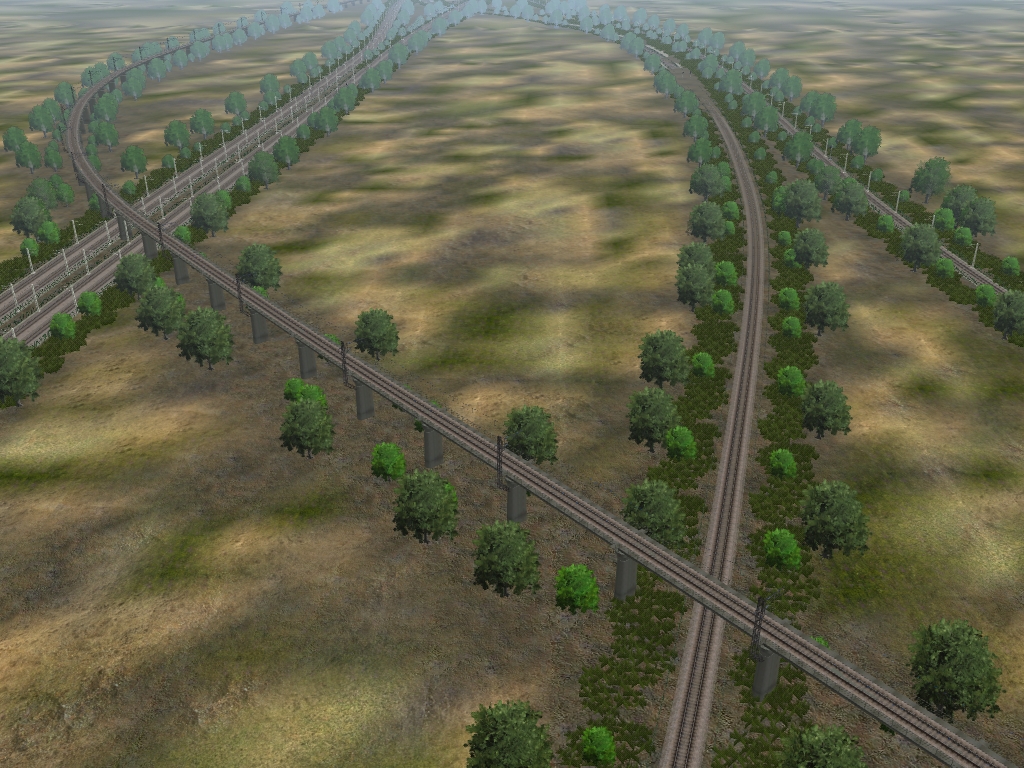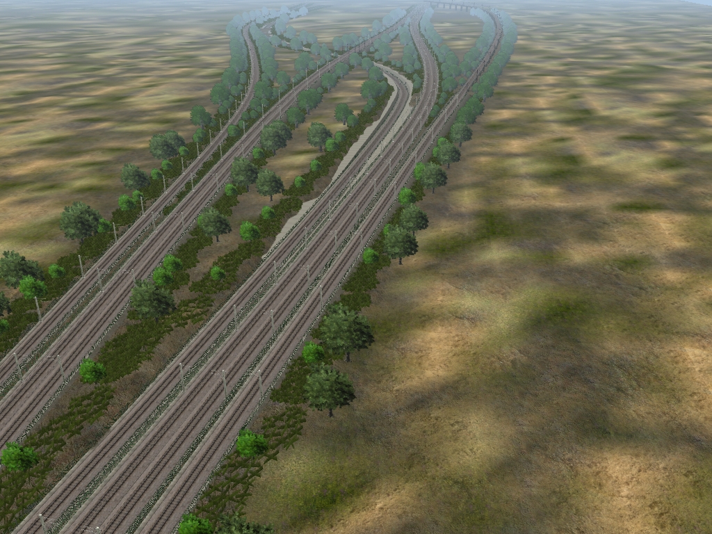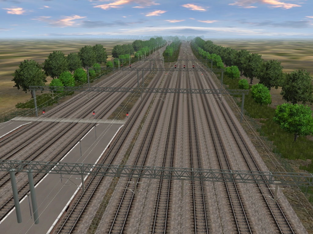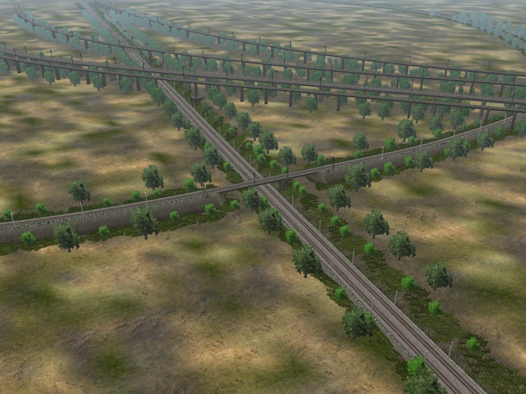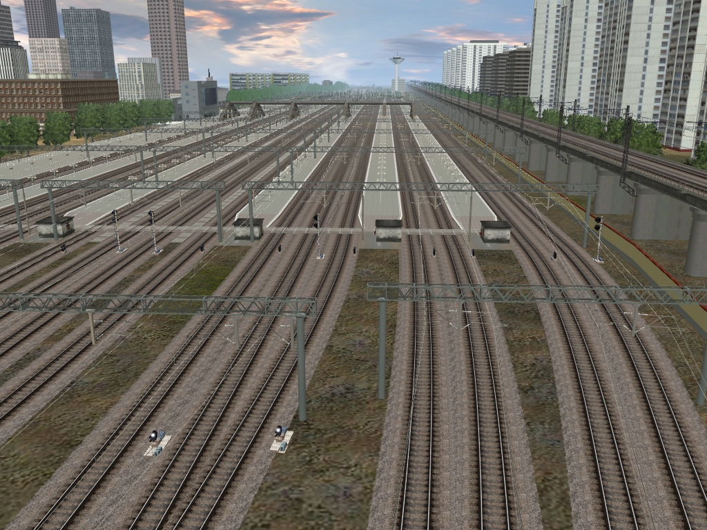 虚拟大环线,目前暂定名,这是本人修的第一条线路,断断续续修了三年,全凭想象,随意修的虚拟线路,以平原为主,附带少量山区,桥梁隧道都有,采用的插件绝大部分来自游戏本身,但还是尽量做到像中国线路的风格,线路设有较大车站:中心站,炼油厂站,煤矿站,南环站,北环站,还有一个编组站,以及其他中小附属站,本线路各站正线道岔默认为直通状态,即使即使人工驾驶列车在不搬道的情况下在环形线路里跑大圈,不会跑上断头线脱轨,本线路主要适合多列AI车同时运行,是以AI车自动化任务运行为主的线路,设定了标准化的轨道标记,包含运行方向标记,始发到达标记,每一个重点车站的轨道都有到达始发标记,如果车站有多条轨道去往不同的车站还设有引导车辆通过的标记,防止AI车走错线路,目前线路属于预览版,布景绿化正在由QQ2178312972逐步完成。等到正式版时,大家将看到不一样的视觉效果。由于线路是为AI车设计的,所以信号设置跟真正的铁路信号有很大的差别,所以请不要和真实线路对标。由于经验不足,部分先修的车站道岔设置不是很合理,望各位玩家见谅。